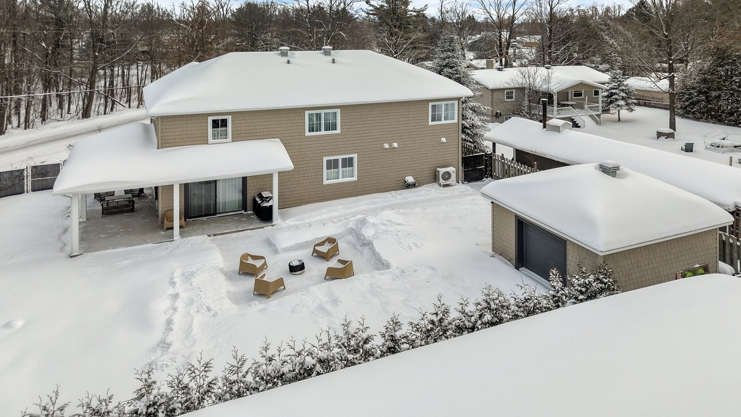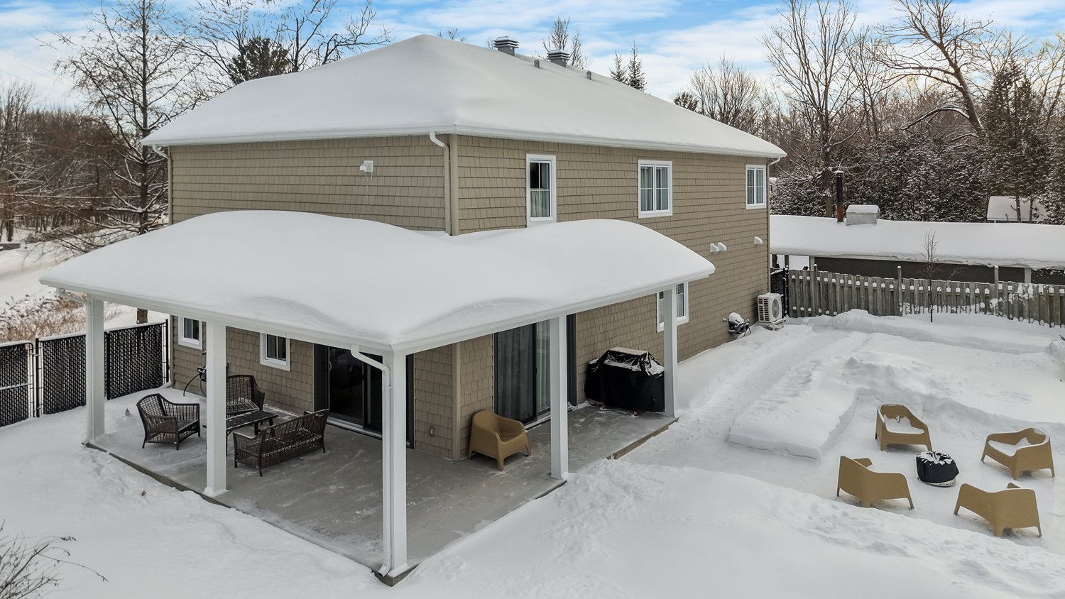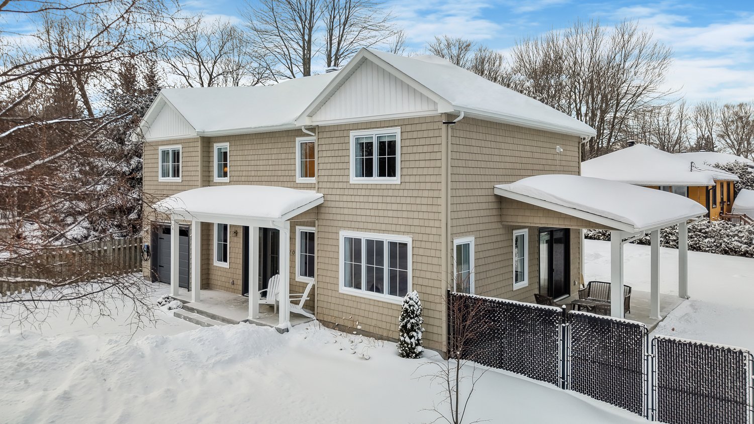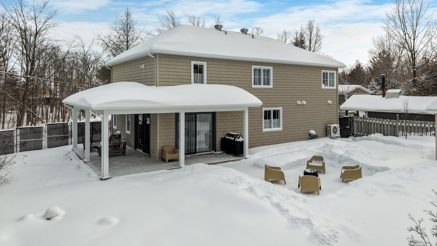À l'extérieur, la façade soignée, combinée aux balcons couverts en béton à l'avant, sur le côté et à l'arrière, ajoute un cachet indéniable à la propriété. Le garage intégré et l'entrée asphaltée pouvant accueillir jusqu'à 10 véhicules assurent une grande fonctionnalité. Le terrain aménagé comprend un patio en pavé uni ainsi qu'un espace de jeu pour enfants, permettant de profiter pleinement des belles saisons. Un grand cabanon isolé de 16 x 16 pieds, construit sur dalle et muni d'une porte de garage, complète parfaitement l'ensemble.
